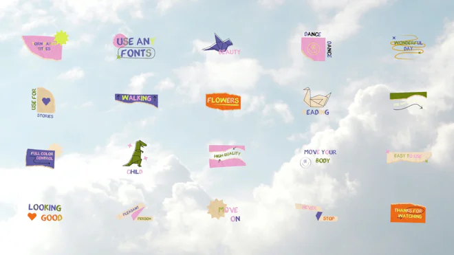 This After Effects template features a set of 20 colorful and cool-looking text animations in torn paper style. You can customize the colors to match your style. You can use them at the beginning, middle, and end of your videos. Grab it now! No plugins are required. Available in 4K.