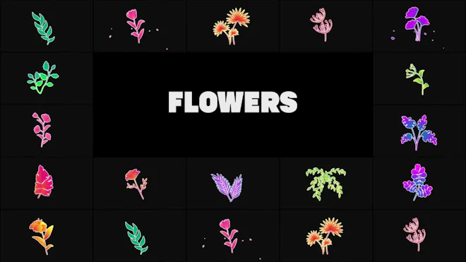 A pack of 15 colorful animated flowers dancing against alpha channels.