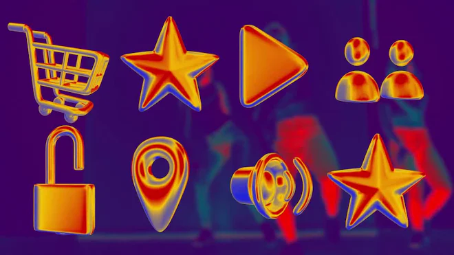 Pack Of 16 Colorful Inflated Icons On Alpha