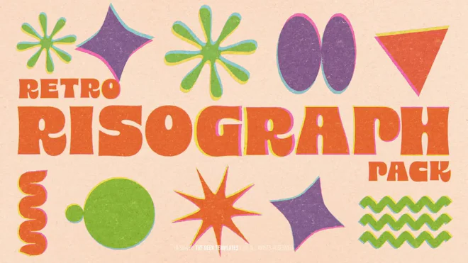 Pack Of 34 retro animated typfaces and elements on an alpha channel, including a retro 70s groovy animated alphabet and symbols.