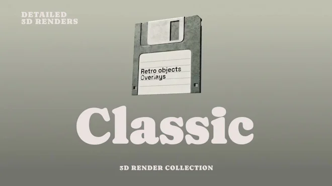 This stock motion graphics video pack includes 8 different clips of 3D retro equipment icons on a transparent alpha channel.