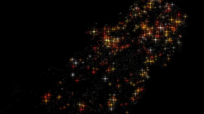 This stock motion graphics video shows a sparkling diagonal trail of twinkling stars.